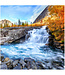 Akustisk bilde "Autumn landscape waterfall" - i en elegant aluminiumsramme